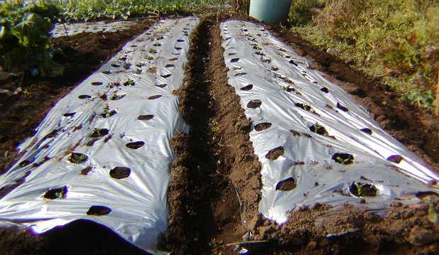ソラマメを定植しました。種をちょっと多めに蒔いたのですが、思ったより発芽率が良くて20個ほど余りました。周りの畑のおじさんに差し上げたら、喜んでおりました。ソラマメもシルバーマルチをしますが、ソラマメはマルチしないでも、冬の寒さには結構強いです。ソラマメのシルバーマルチはアブラムシ対策の為です。シルバーマルチするとしないとでは、アブラムシの付き方が全然違います。私の育てる野菜の中で、ソラマメは消毒が必要な数少ない野菜のひとつですね。できるだけ、口に入らないようにシルバーーマルチしても、実のつく前に2~3回だけ消毒します。無農薬でも出来ますが、ひどい時には、半分近くのの株が駄目になるときもあります(涙)それでも、採れたての美味しさは、枝豆の採れたてと甲乙つけ難いものがある為毎年作ってますよ。