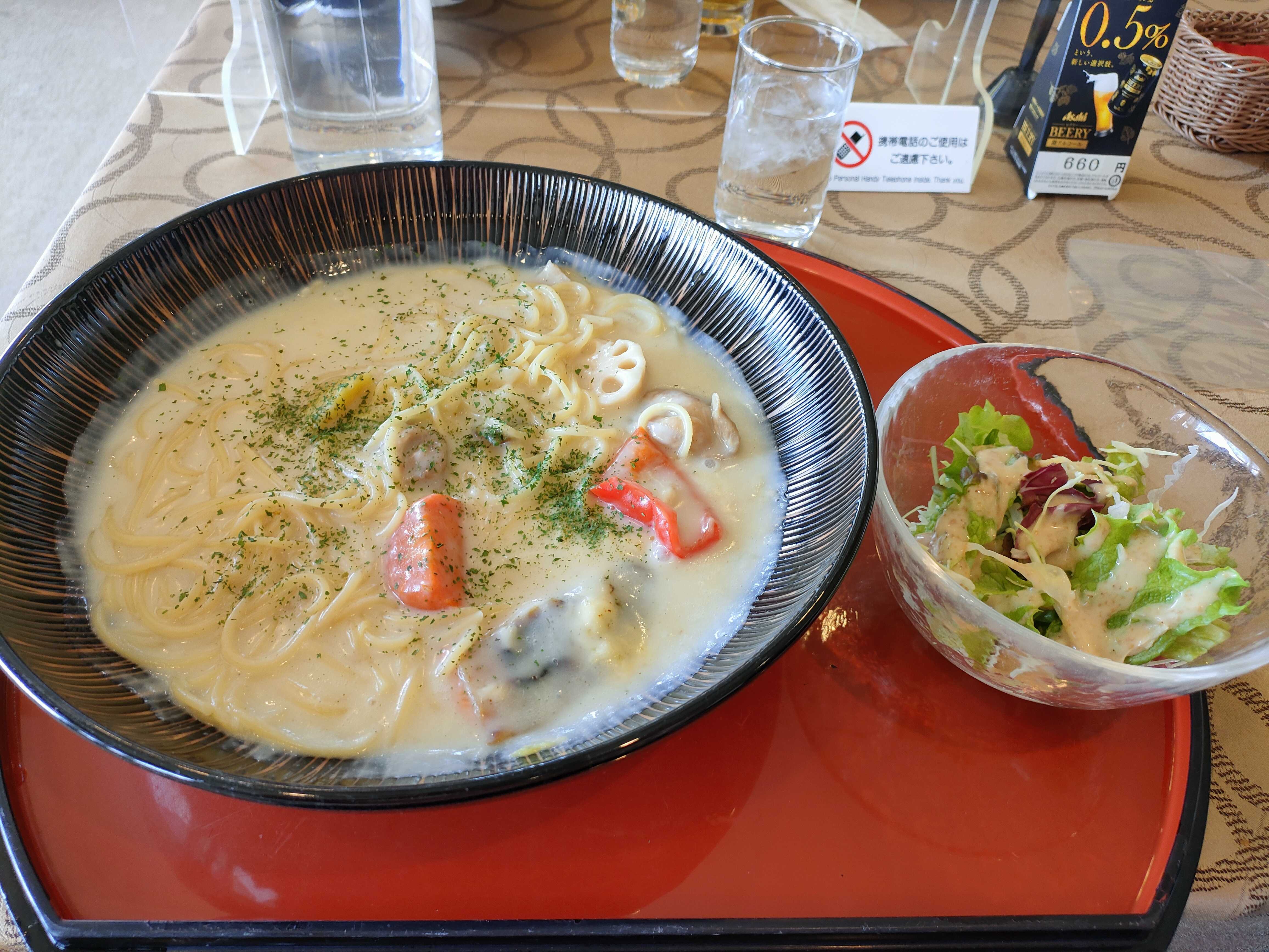 1月に参加したメンバーで再び訪問しました。昼食 鶏と焼き鮭のクリームパスタ450円追加料金今日のスコア残りハーフはいつも通りバテてしまい、PARなしの「57」でした。ハーフベストが出せたので満足ですが、100切りが出来なかったのは残念です。