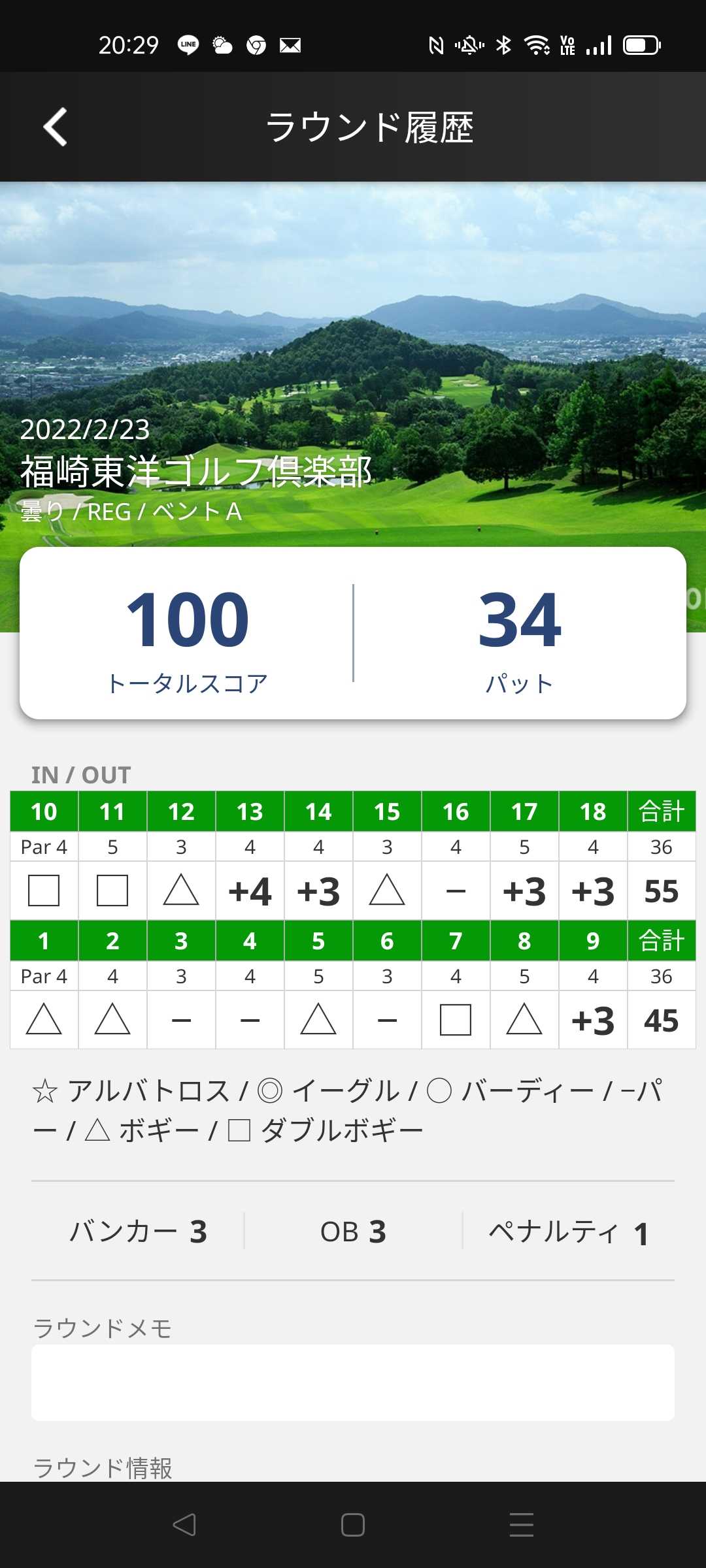 ハーフベストが出せたので満足ですが、100切りが出来なかったのは残念です。