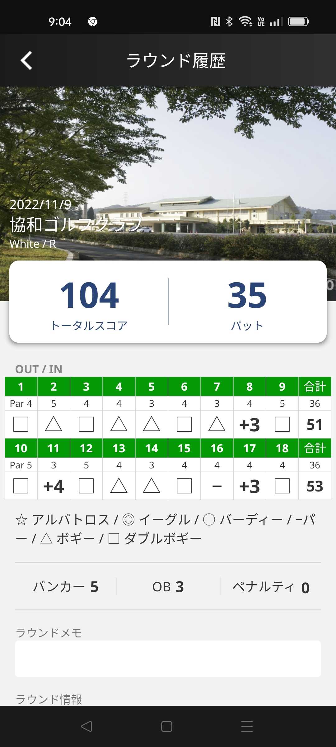 後半はOBが無かったのは良いがバンカーに入れたりと前後半共に50切り失敗でした。