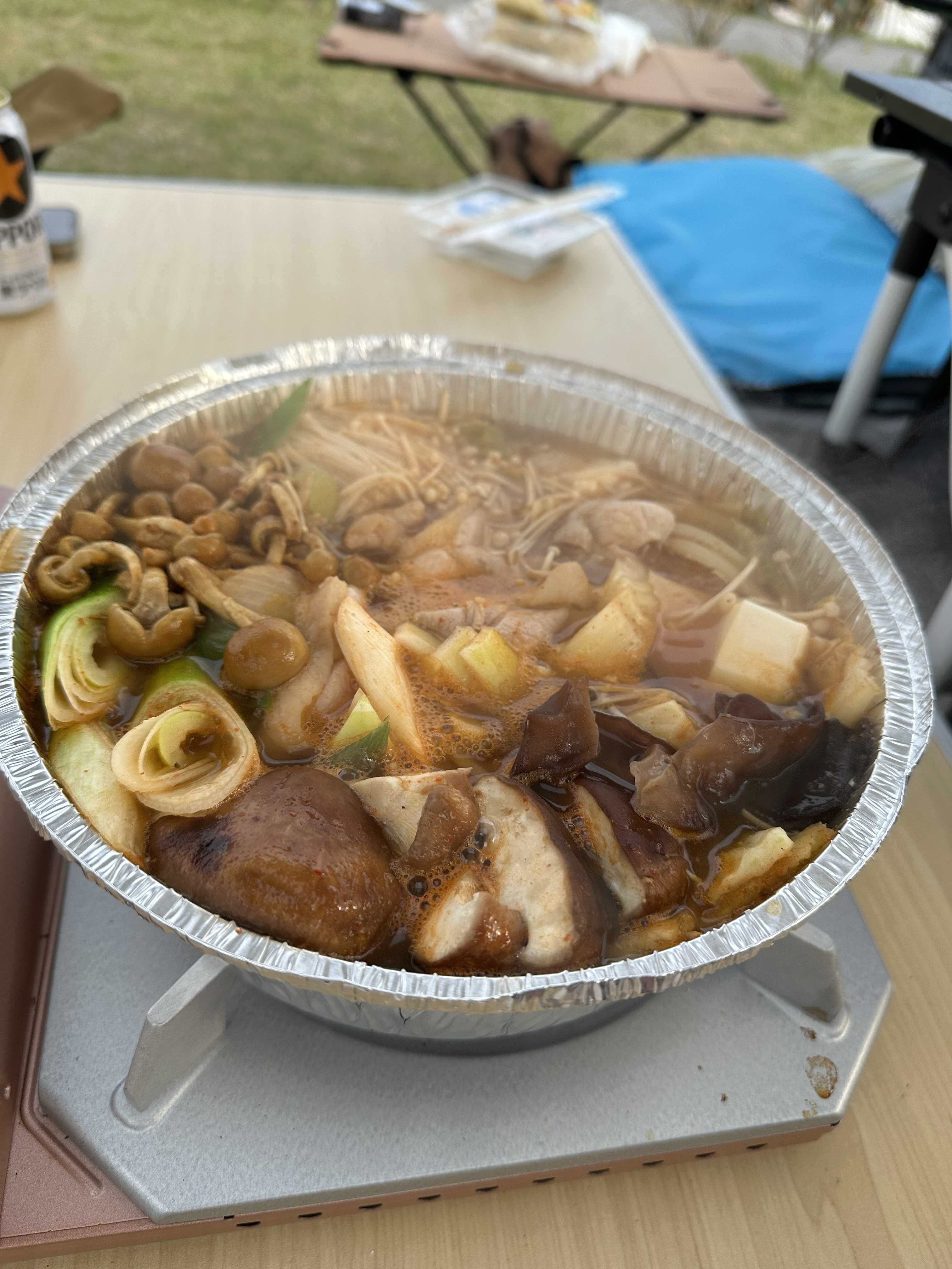 夜はお鍋っ!火が落ちると寒かったから温かくてめっちゃ良かった!