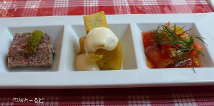 友達と銀座でランチしました。場所はプランタン銀座の近くの気軽なスペイン料理店。この店には以前、スペインに住んでいたことがある友達に連れて行ってもらったことがあり、何回かリピートしています。レバーのパテ、スパニッシュ・オムレツ、サーモンのマリネ。メインは私は魚料理選択だったのですがこれはイトヨリのアクアパッツア・スペイン・バージョン。今までに食べたことのあるイタリアンのアクアパッツアよりスープが濃厚な感じ。美味しかったです。友達が選択したのは肉料理のポトフ。これも見た目にもお肉が柔らかそうで、友達は「すごく美味しかった。」とのこと。アイスはパイナップル味でした。銀座にしてはリーズナブルなランチ・コースで、私たちは、前菜かサラダの二択、肉か魚料理かパエリヤの三択、アイスクリーム、コーヒーのコース(1500円)にしました。この上の2,200円のコースは、メイン料理のあとパエリア付きで以前、そのコースにしたら、パエリヤ一人前が1人で食べきれないくらいでした。デザートがクレマ・カタルーニャでした。1階と2階とメニューが違うので、ご注意下さい。バニュルス銀座店*******************************************************************明日から「実家詣で」に参ります。次の日記更新は週明けになります。ごきげんよう。
