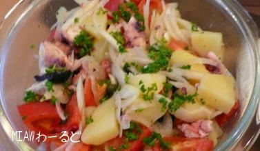 イタリアンの教室に行く途中、私鉄からJRに乗り換えしなければいけません。その乗り換えの駅で80代のおばあさんから、「新●●はここで乗り換えですか?」と聞かれました。先生のところも新●●です。●●という地名の入った駅はいくつかあるので「新●●なの?新がつくの?」と念を押したら「そう。」とおっしゃるので「ここで乗り換えですよ。」と答えたら、「乗り換えのところにはどう行くの?」と。「私、行くから一緒に行きますワ。」と言ってご一緒に。おばあさんに合わせてゆっくり歩きました。私はパスモなので、そのままJRの改札に入れるのだけど、おばあさんはJRの切符を買いなおししなければいけなかったのです。乗り継ぎの時間がなかったので、「ここで切符を買ってくださいね。じゃ…。」と独り、改札を通ったのです。ホームに行ったら私の乗る予定の電車が出て行ったあと。次のを5,6分待つことになりました。余裕を持って出てきたから、1本後のでも充分間に合うのですが…。それより、おばあさんが、なかなかホームに降りて来ないので気がかり。いくら老人でも、切符販売機は空いていたし、エレベーターもあるから5分も6分もかからないと思うのだけど。次の電車が来るまで、ホームを見渡していたけど、おばあさんはいなくて新●●で降りたときも、やはり、おばあさんらしき人はいませんでした。何か気になって…。本当は行き先は新●●じゃなかったの?とか、反対電車に乗ってしまったの?…と、いろいろ考えてしまいました。他人様の世話をするなら、最後まで徹底的にすべきだったかも。タコのサラダ。タコを柔らかく煮る方法を教えていただきました。じゃがいもがドレッシングを吸うので、いっそう美味しくなります。パプリカの冷たいパスタ。この赤はトマトじゃありません。焼いた赤パプリカのピュレ。甘くて食べやすいお味でした。黄パプリカのほうは先月習ったようなマリネです。もう一品、デザートで下がブラッドオレンジゼリー、上がマルサラ酒風味のムースになっているのを作ったのですがなんと私、美味しい~!と夢中で食べていて、写真を撮り忘れました。こちらはムースに入れたマルサラ酒です。