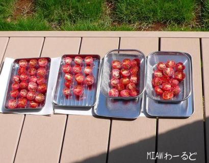 独りの休日、ゆっくり起きようと思いましたが「チョットコイ、チョットコイ…」というコジュケイの声で6時に目が覚めました。(注・クリックするとコジュケイの声が聞けます。)今日はドライトマトを作りました。最低、3日は天日干しが必要。ウッドデッキの上に干しましたが、2階のベランダのほうが速く乾燥したかもしれません。湿度もあるので、夜間は冷蔵庫にしまいます。市販のものほど乾燥しきらず、セミドライも美味しいので半生状態で取り入れて、冷凍にしようと思います。もう1つ、作ったのは「シソ・ジュース」。シソを買ってきて、水で煮詰めて、砂糖を入れ、レモン汁を加えただけです。これも、夏バテにいいらしいです。私の独り夕食。「独り夕食」で、何かいいものはないかと検索したら、過去の自分の日記が出てきたので笑えました。独りだからと言って、2日も3日も粗食だと、バテてしまいますから。キムチの残りがあったので、キムチ、ニラとキュウリのサラダ、カルビ焼き…と韓国風に。