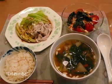 実家詣でから戻り、日曜日の夜は主人のリクエストで「モツ鍋」でした。暑いときに熱い鍋を食べて、汗をかきました。昨日の夕食は中華のような、韓国風のような、無国籍な料理。茄子は蒸し器で蒸す料理なのですが、面倒なので皮を剥いてラップしてレンジにかけました。(ある方のブログで、そうすると美味しく食べられるとあったので…)豚ロースの薄切りと、キャベツは茹でました。これは韓国海苔とコチュジャンを使用しているので韓国風冷奴でしょうか?豆腐は「男前」の寄せ豆腐を使ったところ、豆腐自体がかなり甘味がありました。絹ごしでも、韓国豆腐のように固いものでも良いと思いました。スープは、鶏がらスープストックを使い、れんこん、おかひじき、しょうが、にんにく、クコの実、松の実入り。いちおう「薬膳スープ」です。先週は後半、ドサ回り+実家詣でだったので久しぶりの家のご飯らしい、ご飯でした。