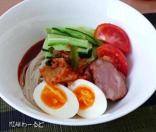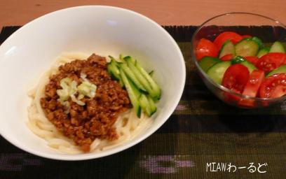 これは中華の炸醤麺(ジャージャン麺)ではなく、盛岡じゃじゃ麺’もどき’です。「盛岡じゃじゃ麺」自体がすでに「なんちゃって」だと思いますが…。先日、独りの日に「ジャージャン麺」もしくは「じゃじゃ麺」が(どっちでもいいですが)食べたくなりました。でも、家にはひき肉の買い置きがなく野菜も人参とキャベツしかなかったので仕方なく人参とキャベツをみじん切りにして炒めて八丁味噌と甜麺醤(テンメン)醤、砂糖、みりん、酒、ごま、しょうがで味付けし、「なんちゃって、じゃじゃ麺」を作りました。それが、けっこうイケたのです。今日も主人がドサ回りなので、夕食に「なんちゃって、じゃじゃ麺」を作りました。今日のは、豚ひき肉も入っています。盛岡じゃじゃ麺についてのページによると、食べ終わったどんぶりに、生卵を溶きほぐし、熱いスープを注ぎ、ネギを入れると「鶏蛋湯(チータンタン)」というスープになるそうです。こんな感じでしょうか?盛岡、行ったことがないのですが…。