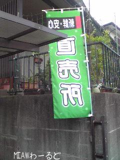 家のすぐ近所、住宅街の中にこんな籏が立っていました。籏が裏返しになってしまっているので、鏡文字ですが…。そのお宅の駐車場を利用した無人の野菜直売所でした。料金を入れる箱と、持ち帰り用にさまざまなビニールのレジ袋。置いてある野菜は種類がいろいろで、形やサイズがまちまち。いびつで汚い感じのもの、熟れ過ぎて割れてきているもの、虫喰いあとがあるもの…など。どうやら、家庭菜園で収穫したものを売っているようでした。