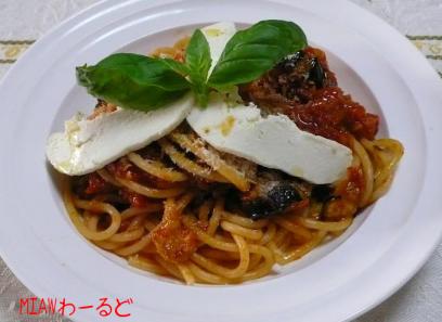 今月のイタリア料理教室。まずは、シンプルなトマトソースの茄子のスパゲティー。「スパゲッティ・アッラ・ノルマ」。夏の間、スパゲッティーニやカッペリーニばかりだったので普通のスパゲティーが太く感じます。とてもシンプルなパスタソースと具ですが、上にトッピングしてあるのは「焼きリコッタチーズ」。焼きリコッタは、日本では売ってないようなので、これは先生のお手製でチーズケーキのように柔らかでふんわりとした食感で、さっぱりしていました。画像ではパスタは多そうに見えますが、50g。茄子のパスタの場合、茄子は薄く切りすぎないこと。揚げると水分が出てペチャンコになりますし、トマトソースと合わせると消えてしまいます。メインのお料理はカジキのインボルディーニという料理。これは、シチリアの方の料理で、豚や鶏でもできるそうですがカジキマグロを薄切りにし、叩いて延ばして、中にフィリング(詰め物)を包み込んで串を打って焼きました。たいへん手の込んだ料理ですが、イタリアではお惣菜屋に串に刺した状態で売られていて、家で焼くだけのものがあるのだそうです。シチリアではこのフィリングの中に、干しぶどうが入っているそうなのですが日本人の味覚では、ほとんどの人は、魚と甘い干しブドウは合わないと思うので先生のレシピには干しぶどうは入っていません。とても美味しく、ヘルシーなメニューですが、如何せん手がかかります。(笑中のフィリングだけでも、瓶詰めなど、できたものが売っていたらよいのに。付け合せの「甘長唐辛子とトマトの煮込み」に使った甘長唐辛子。ピーマンより青臭さがなくて、ししとうよりも食べ易いです。京野菜にはもともと万願寺などありますが、最近はこういう感じのものが首都圏で栽培されているそうです。しかし、(自分の)種の除き方が不十分だったので、種を口にしたらちょっと辛かったです。(笑