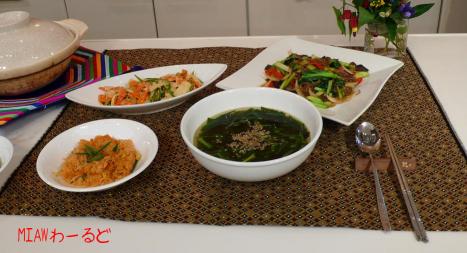 今月のお料理教室のテーマは韓国料理でした。野菜をたっぷり使ったナムル、チャプチェ、もやし飯、ワカメスープ。韓国料理は五味五色と言うそうで、彩り鮮やか、お味も辛さだけでなく甘さ、酸っぱさ、苦さ、塩からさとバラエティに富んでいます。あっさり目で美味しかったけど、私は辛さ慣れしているのでもっと辛くてもいいと思いました。チャプチェには韓国春雨を使いましたが、コシがあって水っぽくなりません。韓国春雨の材料は、サツマイモ澱粉だそうです。ところで、私、半年ほど前から腰が悪くなり、9月になってから、かなりひどくなりとうとう医者に行きました。1週間で痛みは収まりましたけど、椎間板が1個つぶれて腰椎が右に傾いているので今度また、いつ痛くなるかわかりません。立っているよりも、腰掛けているほうが、腰が凝ってきます。傾いているから、支えている右側の筋肉が凝ってしまうのだそうです。普通のスリッパや部屋履きなど、ペタンコのものを履いていると、腰にきてしまいます。自宅では素足で、キッチンでは土踏まずが上がっていて、イボイボの付いている健康サンダルを履いています。イタリアンの先生のところは、ご自宅なのでスリッパに履き替えるのですが私だけは教室用の健康サンダルを持参しております。靴は土踏まずがしっかり上がっていなくてフィットしないもの、ヒールの細いものがダメです。高さがあってもウエッジのようなものなら大丈夫です。