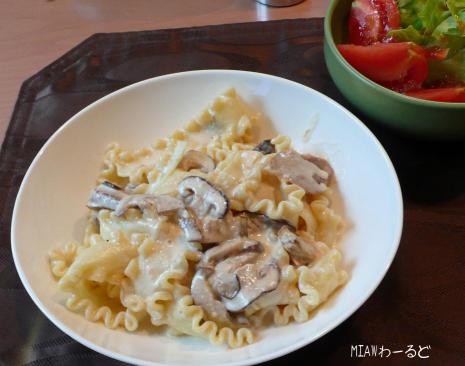 日曜日のお昼に、先日Eatalyで買ってきたMafaldeという長いリボンのようなパスタを食べました。ソースは一緒に買ってきた乾燥ポルチーニ+生椎茸入りクリームソース。生椎茸は何に使うつもりだったのか、買ってあったので加えました。ポルチーニは高価ですが、戻し汁も香り付けに使うので、少量でも良い香りとなりました。Eatalyの乾燥パスタは乾燥パスタの代名詞ともいえるグラニャーノ産でモチモチと歯ごたえがありますがこのMafaldeはフェットチーネの倍くらいの歯ごたえに感じました。半分に折って茹でましたが、もっと細かく折ったほうが食べ易いかもしれません。これを食べながら、ダイニングの窓の外を見たら、野良猫の「ブチ(妹)」が何かくわえて歩いて行きました!一瞬しか姿を見られなかったのですが、なんかぬいぐるみのようなものを…。ネ●ミ!!!?あの~~、私たち、食事中なんですけど…。