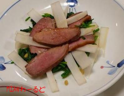今日は午前中、料理教室に。その帰りに美容院に行き、夕方5時頃、外が暗くなってしまってからバラの苗が4本届き寒いので玄関の中で4鉢に植え替えました。今日は風が強いし、日が暮れてからグッと気温が下がり始めました。明日の最高気温は今朝の気温ぐらいだとか…。玄関が泥だらけになって掃除をしたら、なんだか疲れてしまいました。今日の料理教室、鴨ロース肉を焼きました。フライパンで焦げ目をつけてから、漬け汁に漬けて蒸し器で蒸すという、手間をかけた料理ですが、タレを塗ってロースターで焼くよりも簡単で焼き加減に失敗がなく、柔らかく焼けました。漬け汁は、そば汁に使ったり、煮物に使えます。