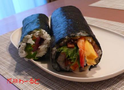 今日は節分。私の家では節分に恵方巻を食べる風習はないのだけど節分の日(すなわち今日)は自分が忙しいことがわかっていたので夕食は「手抜き」で某所で恵方巻の予約をしました。主人に何回でも聞きました。2月3日は日本にいるのかどうか?家でご飯を食べるのかどうなのか?日本にいるときは、ほとんど家で食べるので「食べる」という返事でした。でもって、予約し、前払いもしました。そしたら、急に海外からの客人と会食だからご飯要らなくなった・・・と。うわーーーーーーーっ!!細いほうが、普通の太巻きの太さで右はかなり太いです。実はこのほかに、もう1本買ってしまったのです!!ここまで太いとは想像できず、普通の太巻きサイズだと思ったのでもしも1人1本で足らなかったらイヤだから・・・と人数分より多く買ったのです。細いほうが中トロ入り、太いほうはエビやイカ入り。見た感じ、細いほう1本と太いほう半分は私独りで食べられそうです。残りは・・・明日の朝、食べてしまうかまたお昼に私が頂くことになります・・・。別に予約でなくても、ごく普通の太巻きはいたるところで売っていたので予約などしなければ良かったです。