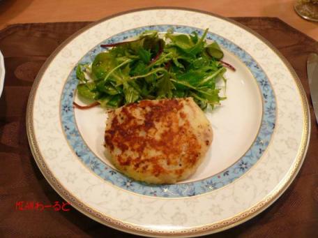 PCに画像を取り込むことができなくなって30分以上格闘しました。カメラとPCをつないで、カメラをonにするとPCの音はするので、認識はしていると思うのですがそのあとの「画像を取り込む」などの画面が表示されないのです。もう1機のPCで画像を取り込んだのは良いのですがそちらのPCの「ペイント」が非常に使いにくく上書きができなかったり、保存すると大きな白の中に画像が小さく入っていたり・・・。仕方がないので大きい画像のまま、自分のメールアドレスに画像ファイルを送りこちらのPCで開いて、ペイントで縮小しました。なんという面倒な・・・。こんな状態が長く続くとブログ更新もイヤになってしまうかも・・・。原因は何でしょうか?*****土曜日は主人の希望を聞いたら「チゲ」とのことで「チゲ」にしました。相変わらず辛いもの好きです。日曜日は料理教室の復習。最近、復習できてないものが多いです。ジャガイモのガレット、サラダ仕立て。まるでハンバーグのように見えますが違います。中はツナポテト。セルクルで焼いたのですが、ジャガイモが水分の多いジャガイモで柔らかく、型からはずすときに少し崩れました。やはりもう少し小さいセルクルのほうがかわいらしく見えますね・・・。サーモンのポワレ、アサリとキャベツの白ワインソースサーモンはノルウェー産サーモンがお買い得だったので買いました。食べる寸前まで、鯛か鰆など白身の魚にすればよかったかな・・・と思っていたのですが、美味しいサーモンでした。白ワイン、生クリーム、卵黄で作るこのソースも3回くらい習って、何度か自分で作って、やっとモノにした感じです。このあと、イチゴのムースを作る予定でしたが翌日、主人が中性脂肪値の検査があるというのでイチゴは昼間、何もつけずにそのまま頂きました。