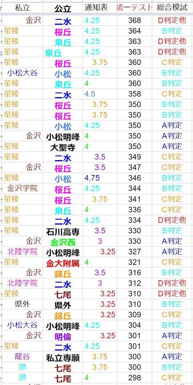 310@ Re:石川県公立高校合格ライン23 4/3更新 60データ超え(03/07) いつも貴重な情報ありがとうございます。 …