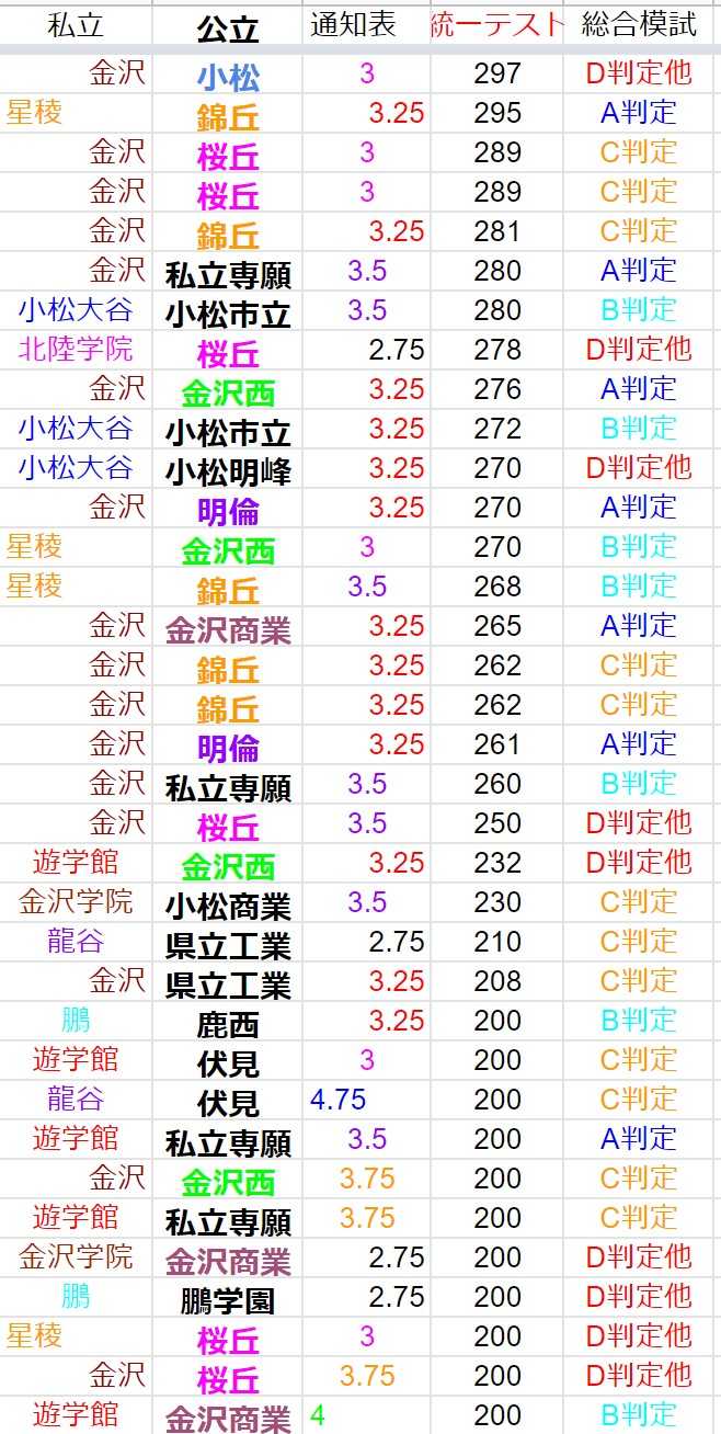 他校不合格 ​県工金商​ ​津幡辰巳丘鶴来内灘向陽松任翠星​