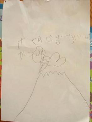 ママにあげる(*^_^*)と、Rinが書いてくれました♪「さくらじまがばかつ」と書いていますが、本人は「桜島が爆発したところ」と思っています(苦笑)実は先週金曜日、家族で桜島に釣りに行ったのですが、その時、桜島が小さな噴火活動を繰り返していて、何度か噴煙が上がるのが見えたんです。それで、これは写真をとってブログにアップしよう♪と思って何枚か写真を撮っていたのですが、その後足湯につかり、さぁ帰ろう!とした瞬間、ポチャン♪というなんとも言えない音が。。。なんだか携帯落としそうだな。。と思っていたいやな予感が的中し、見事に携帯が足湯の中へ( ̄□||||!!釣りをしていた家族を慌てて呼び寄せ、ショップに持っていきましたが、電源がはいらずお陀仏で、みんなのアドレスも消えたし、撮った写真も駄目に。。。そんないきさつがあって昨日お絵かきをしていたRinが急に上の絵をプレゼントしてくれました。もっと釣りがしたかったRinは私が帰るよといった時、「自分が悪いんじゃん!」とぶつぶつ文句を言って不満そうだったので、怒っているのかなと思っていたのですが、心のどこかには「ママかわいそう。。。」という気持ちがあったみたいで、「ママが写真を撮ったけど駄目になっちゃったから、絵を描いてあげたよ」と優しい一言を添えてくれました(T-T) ウルウルおりしも昨日は桜島が久しぶりに大爆発をし、鹿児島市内はすごいドカ灰が降って大変だった日。うちは風向きが違ったので幸い灰は降らなかったし、爆発にも気がつかなかったんだけど、Rinなりに何か感じるものがあったのかもしれないですね。だって、桜島が爆発したすぐ後ぐらいにこの絵を描いてくれたんですもの。ニュースを見てびっくりでした(^^)いずれにしても、Rinの優しさと、とても上手に桜島の様子をとらえている絵にと~っても嬉しく心が安らいだママでした。手作り石けんのお店 Latte Angela下記のイベントに参加させていただきます♪素敵雑貨マーケット~ フレンチ&ナチュラルカントリー手作り雑貨 ~2009.6.6(sat)11:30~16:00自由が丘アートフォーラムワンズ