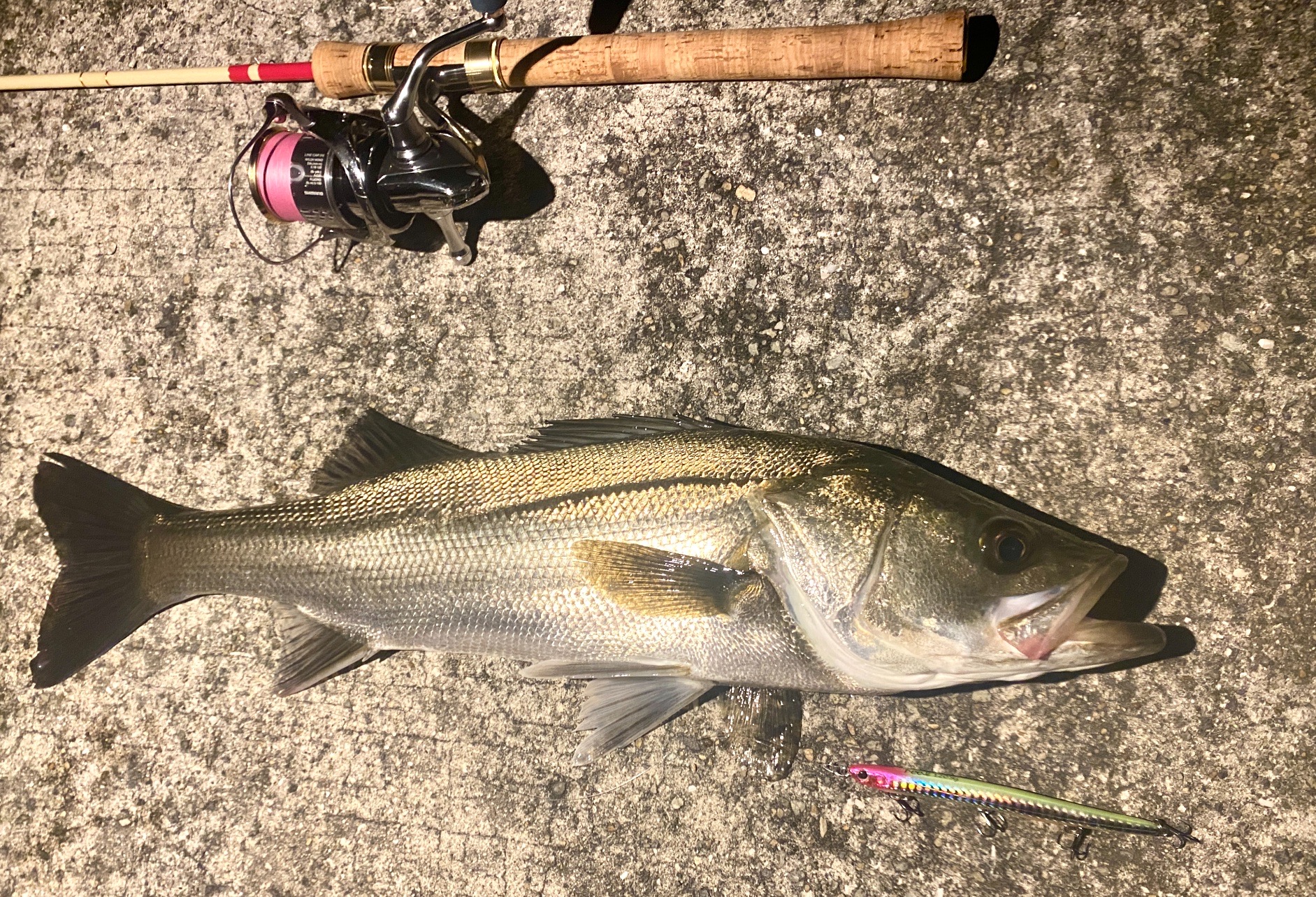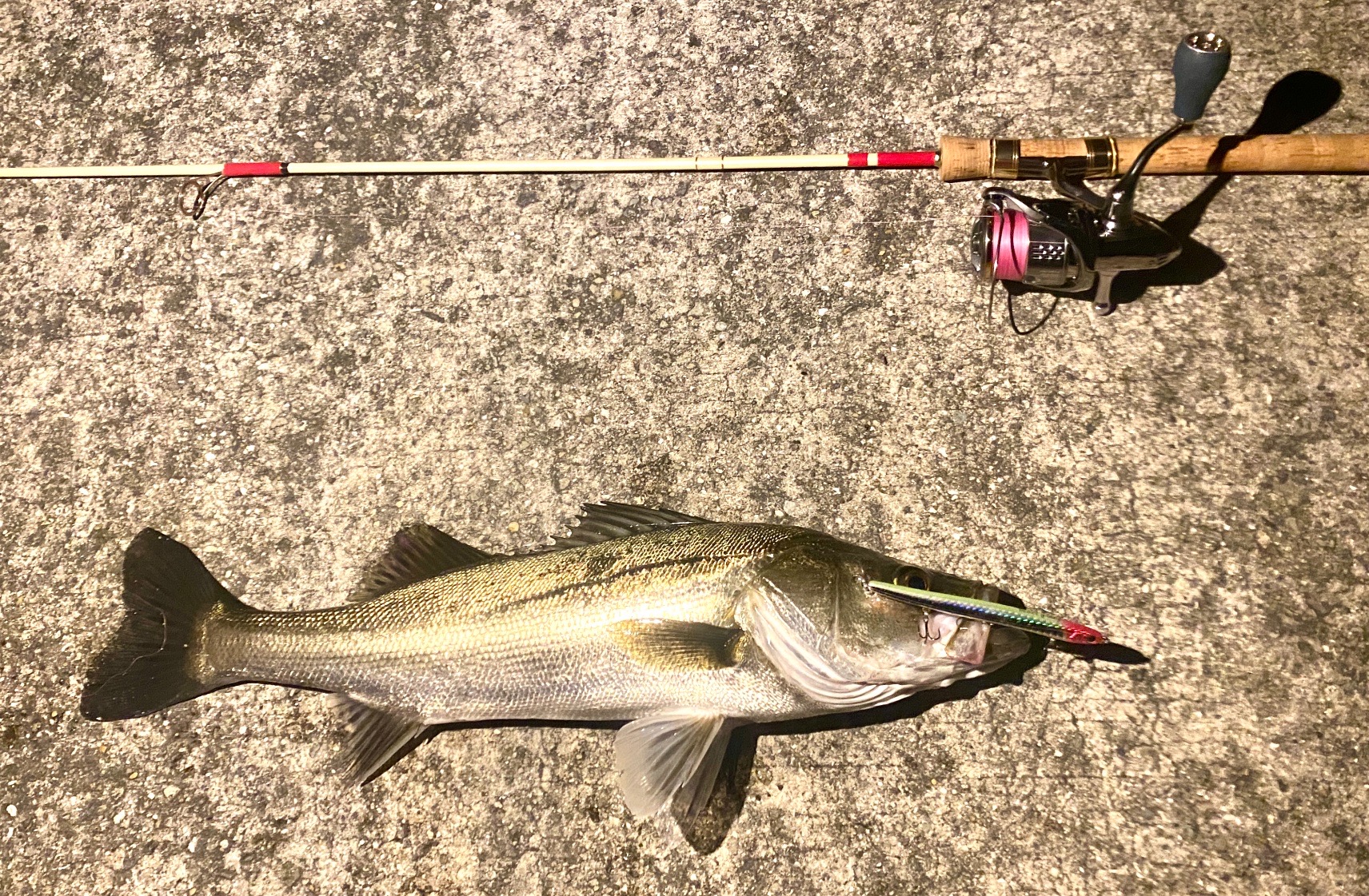 顔のデカいシーバス!メジャーで計測、、59cmやった〜😅