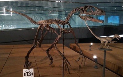 ミクロラプトル・ザオイアヌスMicroraptor zhaoianus意味:小さな略奪者系統:獣脚亜目・ドロマエオサウルス類体長:1m時代:白亜紀前期写真:千葉中央博物館(特別展:ティラノサウルス-肉食恐竜の世界-)
