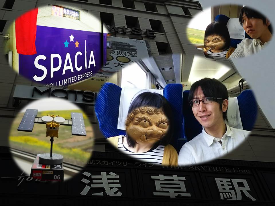COVAYUお誕生日旅行~鬼怒川温泉~ボクの誕生日祝いで、ヌカカと2人で鬼怒川温泉へ行ってきました。朝9時、浅草発の特急スペーシアに乗っていきます。実はスペーシアに乗れるとは知らず、電車が来たら「これに乗れるのか~♪」と驚きました!!今回はTSUGUに貰った誕生日プレゼント、【はやぶさ2】のプレミアムトミカもご同行します。今回のヌカカの顔隠しには【鬼怒太】に協力してもらいます♪鬼怒川温泉に着いたら、何と桜が満開でした!!ボクの誕生日を祝ってくれているような勘違いをし始めました。ホテルに荷物を預けて、まずは【鬼怒楯岩大吊橋】までお散歩しました。ここは見た目は近代的な吊橋なんだけど、めっちゃ揺れて恐かったwwヌカカと2人で「これは80mぐらいかな?」「いや、100mはあるでしょう」など、橋から下を流れる鬼怒川の高さを予想してたら、高さ37mでしたww目測の誤り方がハンパないwwこれは今後のためにも反省しました。次は【東武ワールドスクエア】を目指してお散歩しました。途中でスペーシアに会ったり、枝垂桜や黄色いお花の写真撮ったり、あとスーパーで買った唐揚げを食べ歩きしました。そして橋から歩くこと20分程で、【東武ワールドスクエア】に到着しました。今回の旅からセルカ棒が装備されたので、ボクらには珍しく2人の写真を撮る機会が増えました。しかし相変わらずヌカカは顔出しNGなのです、これはボクじゃなくて本人の希望ねwワールドスクエアは、すべての建物が1/25サイズなのですが、それでもスカイツリーはデカかったw日本の建物の周りには、盆栽サイズの桜が咲いていて、とてもかわいかったです。建物だけではなく、人の人形も置いてあります。この人形たちが中々シュールでw小競り合いをしている学生とかいましたw面白いです。さらに、この人形達の中にスカイツリーのマスコットキャラクター、【ソラカラちゃん】が紛れているそうですw全部ヌカカが発見しましたwwボクはこういうの苦手みたいですねw羽田空港には色んな飛行機がいて、ヌカカの好きなエジプトの、【エジプトエアー】の航空機までいて驚きました。今回連れてきている【はやぶさ2】の他に、ヌカカは【コップのフチ子】も連れてきましたww代々木が似合うかな??ニューヨークの町並みの中でもトラブル発見ww泥棒を追う警官、治安悪そうです、そんな中で結婚式してる場面もあるしwwヌカカの好きなエジプトエリアは、3大ピラミッドとスフィンクスがありました、ここではセルカ棒を三脚代わりにカメラを置き、ふざけた写真を撮りまくりましたwwノイシュバンシュタイン城や、サクラダファミリヤなどの、美しい世界遺産も沢山ありました。ベルサイユ宮殿があんなにでかいとは…。日本のエリアでは金閣寺が素晴らしい、もともと好きじゃなかったけど、金閣寺の魅力を何故かここで感じました。シャクナゲパークというエリアでは八汐ツツジ等のお花に出逢えました。今回泊まるホテルは【ホテル三日月鬼怒川】。「旅行けば楽しい♪ホテル三日月~♪」で、有名なホテルですねw。入口にある噴水ではイルミネーションと音楽で綺麗なショーをしてくれました。晩御飯はバイキングだったんですが、写真ほぼ撮ってないww。ステーキが美味しくて5皿ぐらい食べかな、あとお寿司とかカラースプレーが沢山あったので、バナナを和えてチョコバナナにしましたw。部屋は2人には広すぎる豪華な部屋でした。窓からは鬼怒川を見下ろせました。隣の部屋が修学旅行生??だったらしくうるさかったけどw良い誕生日を迎えられました。大浴場も学生に邪魔されたけどw広くて種類も沢山あって良かったです。朝食もバイキングでw、ボクの好きなウィンナーがあったので、何本も頂きました。朝からマグロのお刺身も頂けて美味しくて…、素敵な朝食でした。ヌカカの作ったトーストにドカドカと載せた"何か"も美味しかったですw。ホテル三日月には温水プールがあり、2日目はここで遊びました。サウナが5種類もあり、2人で制覇しました、いい汗かけた~。ウォータースライダーもあり、見た目しょぼいんだけどw、でも鼻に水が入るほどの勢いで滑れましたw。温水プールを出た後は、帰りの電車まで時間があったので鬼怒川温泉駅周辺を散策しました。お土産屋さんが沢山あったので、楽しく巡る事が出来ました。温泉饅頭を食べようと買おうとしたら、「お饅頭下さい♪」って言ったら、「こちらは試食用で無料です。」って言われて、タダで食べれちゃいましたw。そしてこの日はめっちゃ晴れたので、満開の桜がより綺麗になってくれました。最後は駅前に足湯にも浸かり、珍しく時間に追われる旅で、本当にあっという間でした。帰りは浅草で少し寄り道をして、本物のスカイツリーの夜景を見てから帰りました。暗かったスカイツリーが、見ている途中でいきなりライトアップして驚きました!!ヌカカが点けてくれたそうです←あと、東京駅でも寄り道して、【東京キャラストリート】でやってる