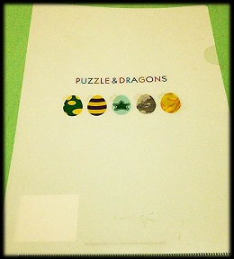 もう2年半…ぐらいかな?ハマっているアプリ【パズドラ】のクリアファイルです。たしかセブンイレブンでゲットした気がします。このクリアファイルはシンプルですね。くりあふぁいるまにあ特別ページへ