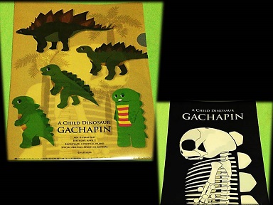 今回のクリアファイルはガチャピンです。これを見て頂くとわかるように…そう、ガチャピンは恐竜だったのですねw、知らなかった。しかもステゴサウルスwwうんピッタリだねw。ガチャピンはディノサウロイドだった!!って事かな??くりあふぁいるまにあ特別ページへ