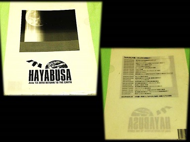 今回のクリアファイルは、【小惑星探査機はやぶさ】です。過去にもVol.45とVol.49でも、はやぶさのクリアファイルが出てきました♪これで3枚目です。そしてこのクリアファイル、かなり使い古されてますね~。はい、使ってました!!もしかしたら一番長く愛用していたかもしれません。なので綺麗なやつをもう一つ欲しいな~っと思ってますw Vol.68Vol.69Vol.70くりあふぁいるまにあ特別ページへ