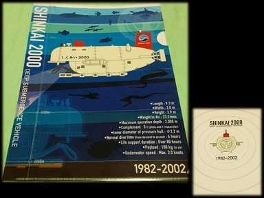 今回のクリアファイルは【しんかい2000】です。文字どおり2000m潜る事が出来ます♪2000ですでにかなりの深海ですが、【しんかい6500】というもっと強者がいます。ちなみにVol.26で【しんかい6500】のクリアファイルを紹介してます。 Vol.64Vol.65Vol.66くりあふぁいるまにあ特別ページへ