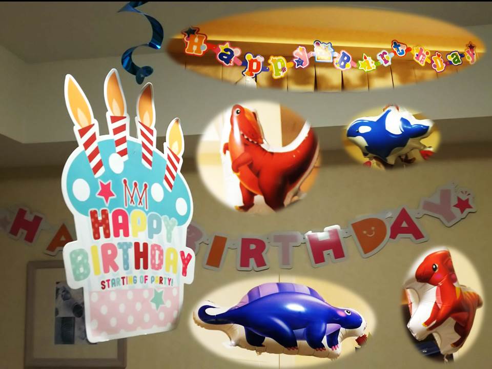 部屋のデコレーションにはボクの大好きな恐竜の風船が沢山!!すげぇすげぇ!!!!