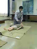 今日は10時から消防署に集合~子供の応急処置方の講習会では救急隊員の方が人工呼吸の仕方や蘇生法を教えてくださった 子供や赤ちゃんが喉に何か詰まらせた時の吐き出させ方や、痙攣を起こした時などの対処方法も教えてくれた。子供達9人は講習中何ふり構わず走りまわり遊んでいた。子供達も一応、講習用の人形に興味をもち、抱っこしてみたりチューブを人形の口にくわえさせてみたり・・・私は人形が破壊されないか心配だった多分救急隊員の人も心配だったはず・・・その後は待ちに待った消防車や救急車との記念撮影 (私は携帯の写メール) 運転席にも座らせてくれたり、子供達の写真撮るのに親も必死だった帰りには子供達におみやげまでくれて、消防署ってサービスいいな~今日は日常生活でとても役に立ちそうな講習だったし、子供達も貴重な経験をさせてもらったな