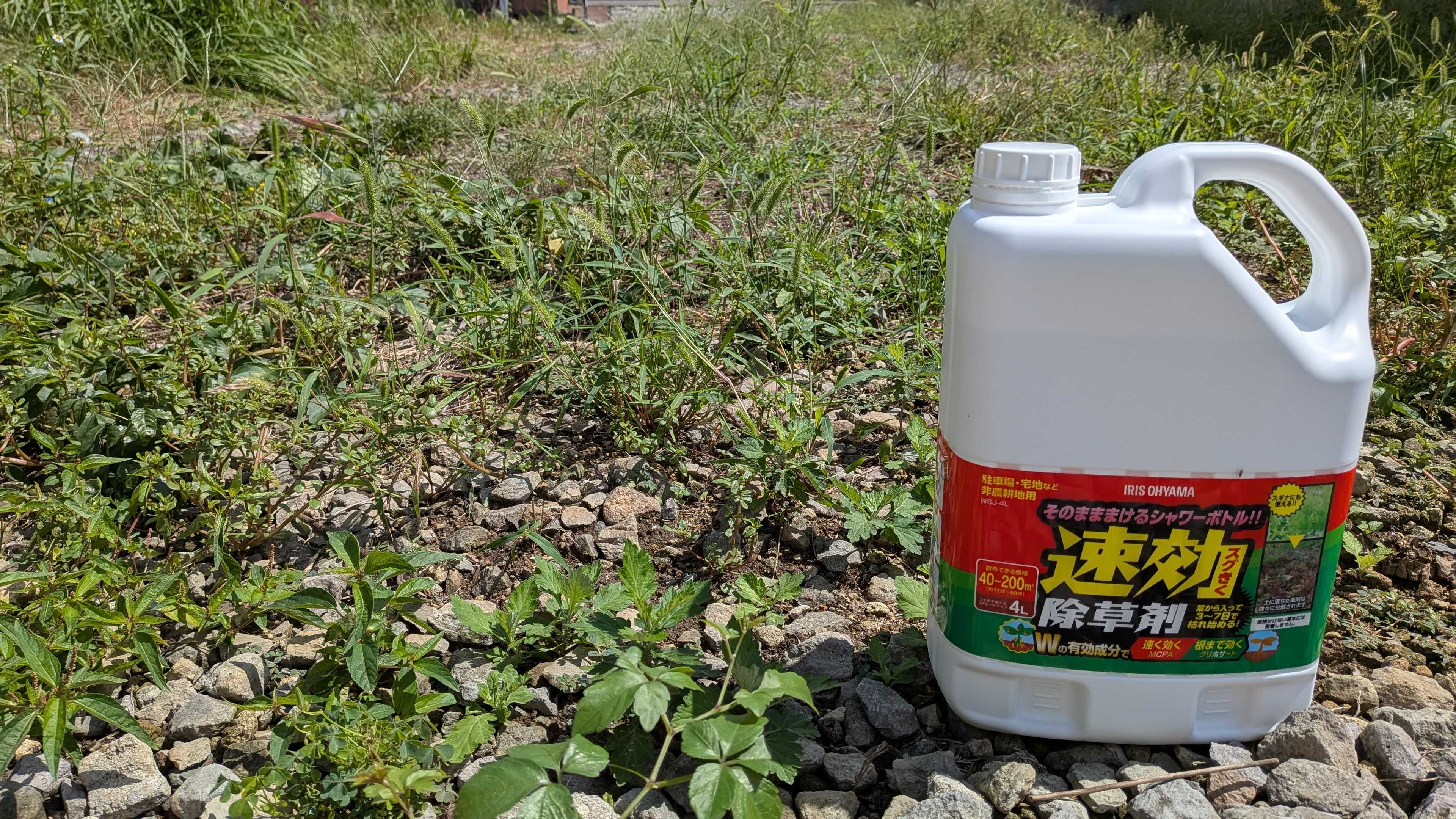 手で抜いてから粒剤タイプの除草剤を散布したいが…左肩が痛いし、暑いので、ダイシンでシャワータイプを買ってきた。【2025/09/06/散布前/昼頃快晴】【2025/09/11/散布から5日後/降雨あり】散布から30時間は晴れていたが、その後は土砂降りを含む連日雨模様。3日目ぐらいから枯れてきたのが分かる。晴れていたら、どうだったのだろう??【2025/09/14/散布から8日後/降雨あり/作業前】久々に晴れたので草取り、枯れているところは抜きやすい。粒剤タイプの除草剤を散布して様子見。【2025/11/02/2回目の散布から14日後/大雨あり】枯れなかったところに散布、最初の数日間は大雨はなく、ただ寒い日が続いた。