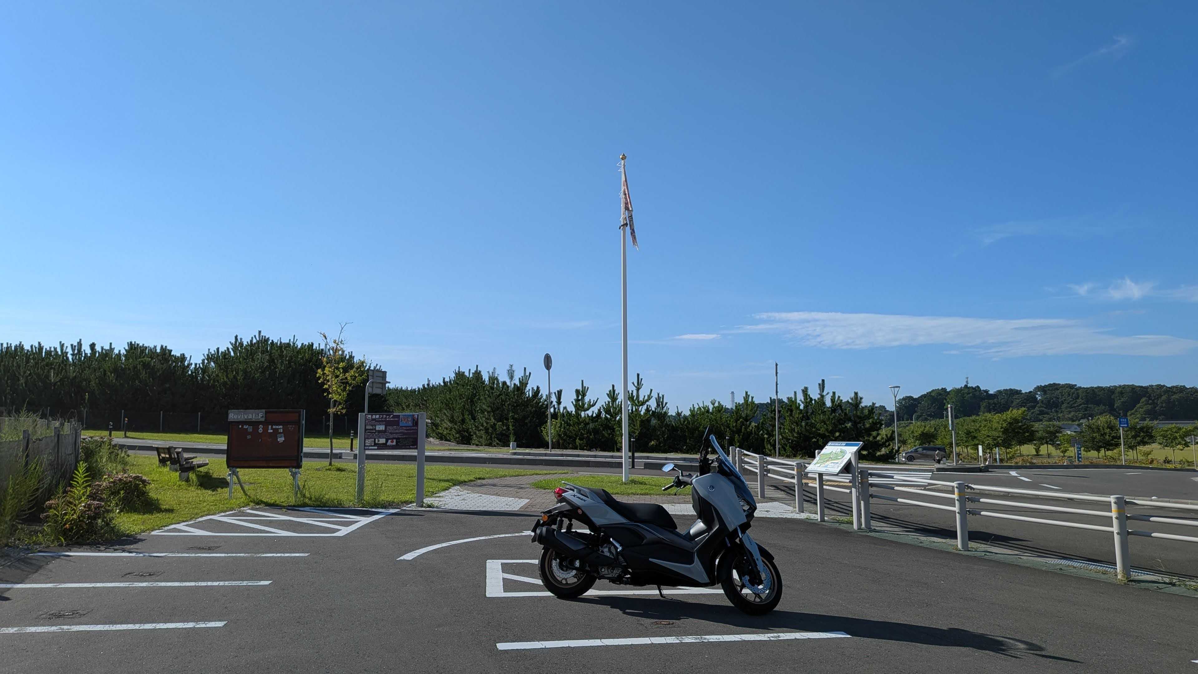 【慣らし運転】三陸道を80-100kmで60km巡航、回転数は5,000-6,000。 バーグマン200よりトルクがあり、無理なく追い越しが出来る。 電動スクリーンの恩恵は微妙!? 一番高い位置と目線がちょうど重なる。一般道のカーブでは、外に振られる。 バーグマン200よりフロントが重いせいか? 慣れが必要。あえて石巻市中心部で連続信号待ち。 足付きが悪いが平坦での信号待ちでは両手をハンドルから離せる。 足つきの悪さによる一時停止での不安定感は慣れるしかないだろう。 バーグマン200より目線が高い。シート下の熱さ。 バーグマン200より熱がこもらないようだ。【大川小】【野蒜築港跡石碑】