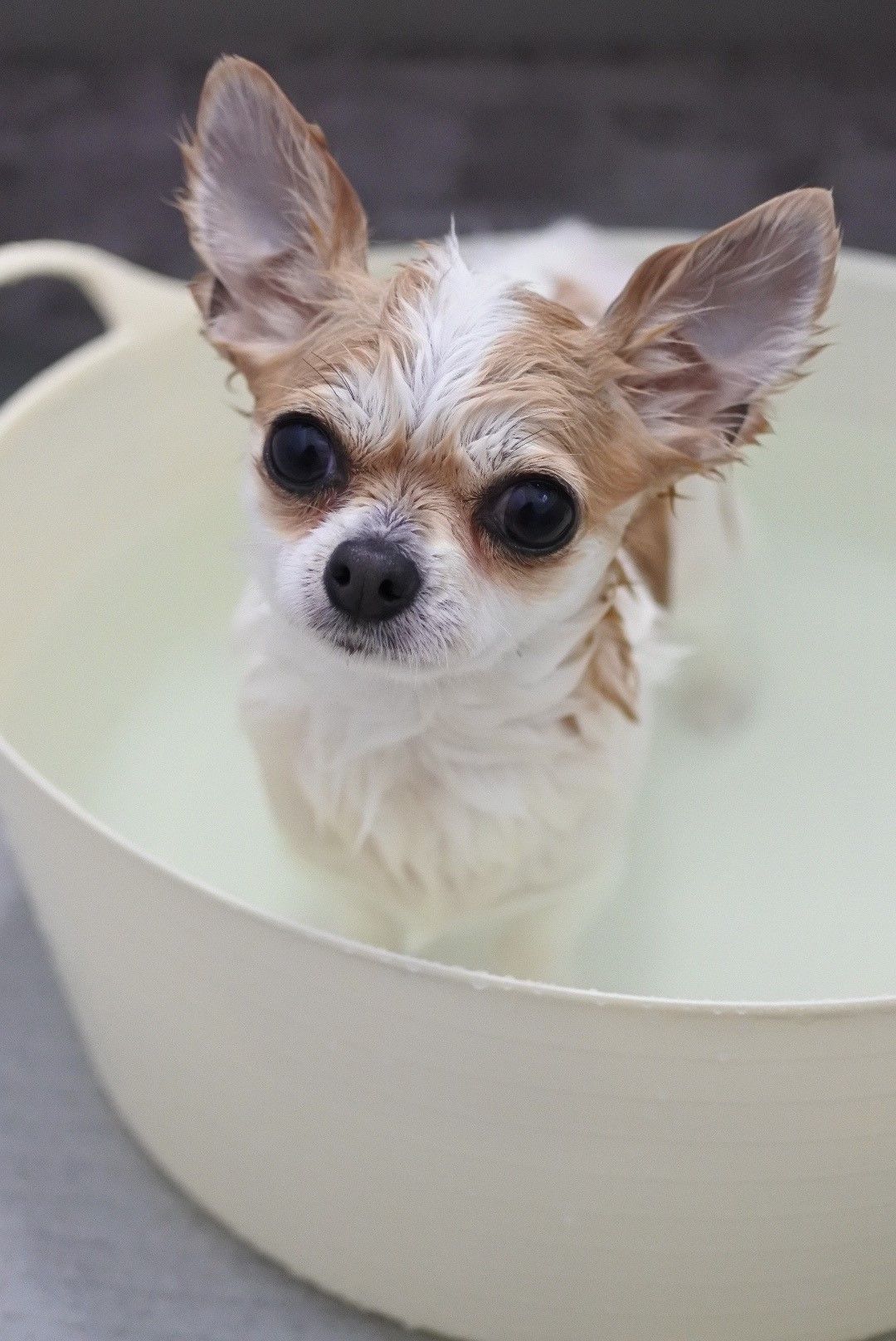 シャンプーを察して、もうご機嫌斜めですが。笑