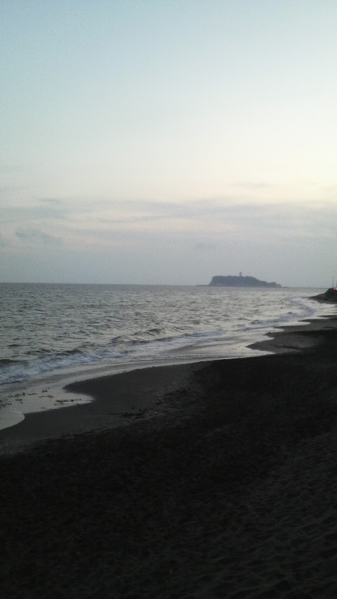 夕日は見えませんでしたが、江ノ島をのぞむきれいな海岸でした