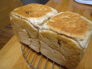 今年は産直でズッキーニをたくさん見かけます。ズッキーニが手に入ったら一度作ってみたいと思っていたズッキーニローフ。去年、旦那さんのおばさんが作ってくれたのを初めて食べてとてもおいしかったので、こっそりレシピを聞いてサプライズで作ってみました気付くかしらね~~~聞いたこともないようなスパイスは無視しつつ、あるものだけ入れて作ってみました。ズッキーニはすりおろしてしまうので、原型はありません。パウンド型は持ってないので、グラタン用の耐熱皿で。これで教えてもらったレシピの半量です。小麦粉3カップはやばいと思って半分にしたのですが、おバカにも塩だけ半量にし忘れ、しょっからいローフでした旦那さんに、これはなんでしょう??と聞いてみましたが、にんじんケーキと言われました!!! 残念でした! 今日はリサイクル小梅酵母の残りを使ってパン焼きです。最近暑いからパンを捏ねる気力減退中旦那さんのリクエストにより、レーズンパンです右の子、ウリボーみたい最近クープが開きまくってしまって、いい感じにペロリとしてくれない。どうしてだろ~~? 今度の週末、酵母のパン教室に初めて行って来ますメニューはバゲットオレンジブリオッシュピザだそうです! 楽しみだな~