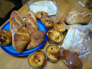 今日は久しぶりのパン教室今回はなんと、初参加の「酵母でパン教室」の日でした。メニューは、レーズン酵母のバゲットホシノのオレンジピール&チョコチップ入りブリオッシュこだまのバゲットこだまのピザ 今日も内容盛りだくさん バゲットの成形は以前も習ったのに、なんかうまくいかないまだ食べてないけど、見た目はぶちゃいくさんになってしまいました。ランチも毎回ゴージャスで、実はこのランチタイムもパン教室の楽しみのひとつ今日は、ニョッキ、サラダ、にんじんの冷製スープ(私担当)、ピザでした今日も食べ過ぎ~~家に帰ってパンを並べたらこんなにありました先生からのおみやげパンも入ってます(*´艸`*)どうやって食べるんだーーー。この量を! 昨日は友人宅に御招きいただき、おいしいお料理をたらふくごちそうになってきました。 今日もパン教室ランチでがっつり食べて、重量オーバーですパン教室終わってから泳ぎに行きましたが、からだが動かない~ 結婚式まであとわずか、ラストスパートで明日から泳ぎまくります