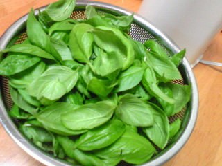 今朝は少し涼しかったので、朝から網戸の掃除。ベランダで網戸を拭いていたらもじゃもじゃのバジルが気になり出して・・・ペーストはもうたくさんあるので、乾燥バジルを作ってみました乾燥バジルは作ったことがないので、失敗を恐れてちょっと少なめに採取ビビりな私です天気がよかったので、洗ってからベランダで干してみましたちょっとしな~~~っとしちゃいました。レンジでチンして乾燥させるレシピと、冷蔵庫に入れて少しずつ乾かすレシピ、両方見つけたのですが、まずは冷蔵庫で放置からトライ!2週間くらいでできるそうなので、冷蔵庫開けるたびにフリフリします バジル熱に火が付き、バジルペースト入りのパンを作りました冷凍庫のペーストを適当に砕いて、チーズと一緒に混ぜ込み~。お決まりの100均ザルで発酵させましたが、ザル模様がびみょ~~。でもチーズとバジルの香りはサイコーで、食欲そそりますねペーストを出しっぱなしにしておいたらドロドロになってしまったのでお昼ゴハンにもバジル とろけたペーストを絡ませただけの冷製ジェノベーゼ、香りがいいです! ざく切りトマトのざく切り具合が男の料理ですね!! でかいっ! バジルチーズパン、カットしてジップロックに入れるだけのはずが、香りにやられて味見しちゃった今日はたくさん泳いでカロリー消費したからよしということで。