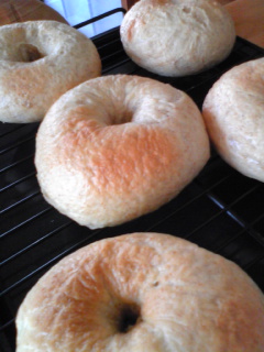 お義母さんに教わったメープルポークが美味しくできたので、ベーグルで食べたいなぁと思って、朝からベーグル作りましたいつもなんだかうまくいかないベーグル、今日のもなんだかボヨボヨしていますもうちょっと、ツルっとピカっとしててハリのあるベーグルができたらいいんだけど。。ケトリングが長過ぎるんでしょうか??とにかく、こんな感じに出来上がったのでメープルポークをはさんでいただきます 中身はレタス、パプリカ、玉ねぎ、そしてメープルポークとマリネ液もたら~り旦那さんからは大絶賛をいただきましたが、ベーグルは絶対にもっと美味しくできるはず!旦那さんがベーグル好きなので、また次回もベーグルに挑戦しようと思います。 今日は中秋の名月ですね特に意識していなかったのですが、晩ゴハンを作りながら偶然聞いていたラジオであまりにも、名月、名月、月見団子、月見団子、と言っていたので気になってきてしまいました!仕事帰りの旦那さんに、「なんでもいいからお団子買って来て!」と無茶ぶりし、買って来てもらいましたそしたらセットでススキも持って来てくれました。お団子お買い上げの人にはプレゼントしてるんだそうです。晩ゴハンを食べてから、ススキとお団子を屋上に持って行ってお月見きれいな満月とお団子を1時間程見てました。鈴虫の鳴き声も聴こえたし、気持ちいい風も吹いてるし、ちゃんと秋に近づいてますね。