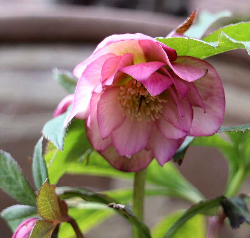 この寒い中、こんなに綺麗に咲くミニバラクリスマスローズは、葉狩をして一緒に切ってしまったもの