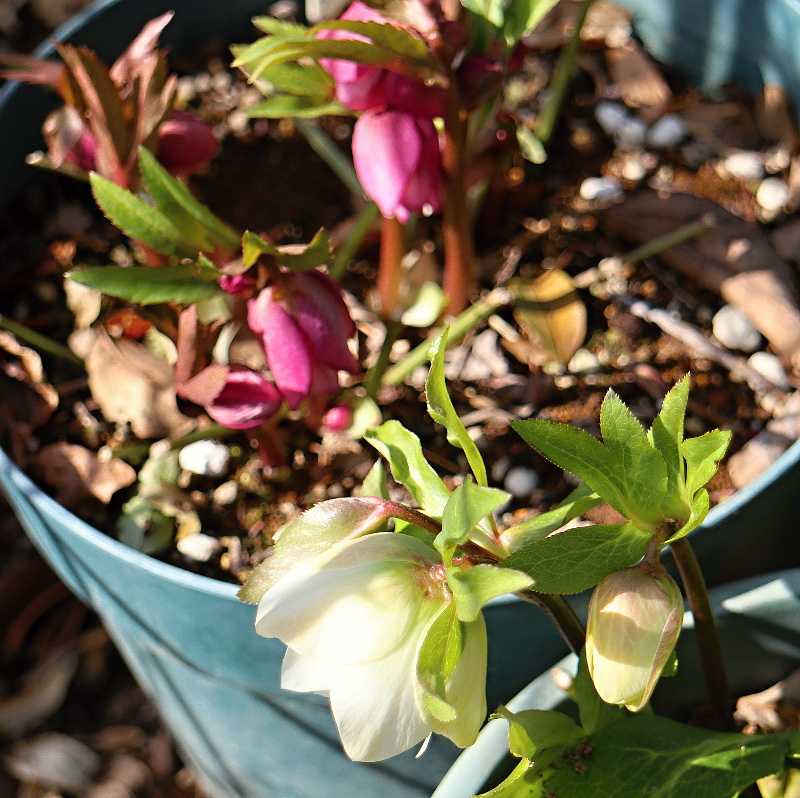 クリスマスローズが幾つも咲きだしました。手入れが悪いので、昨年より花付きが悪い感じです。庭の隅で咲く二ゲル