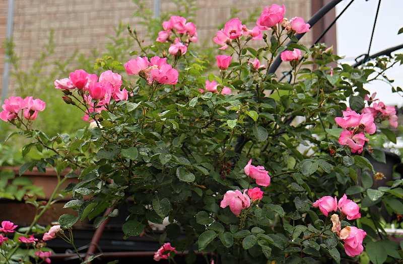 繰り返し良く咲いてくるアランティッチマーシュシュートが細めで垂れて咲きがちですが、可愛い花形、花色、芳香、好きなバラです。