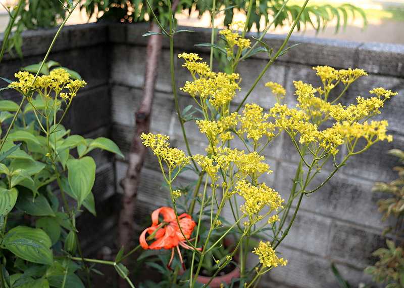 ムカゴが付くので、それがこぼれて実生が芽生えるので、庭のあちこちで咲くオニユリ芽生えて2年目位には咲きます