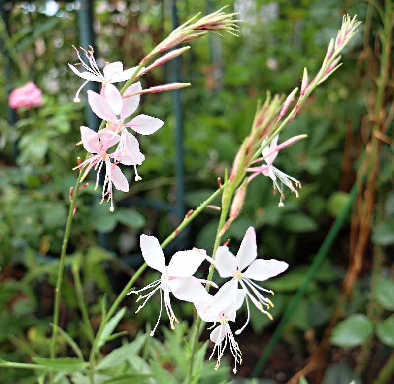 青花と白花白花は、異常なほど伸びていたので7月頃、丈を半分位切り戻しましたが、咲いてきました。