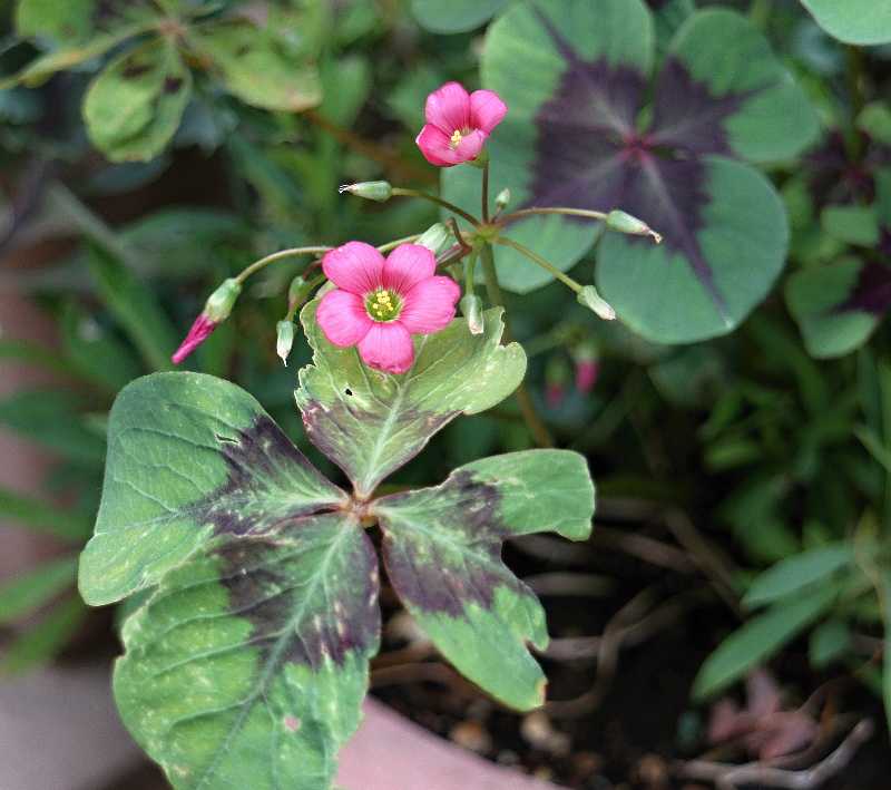 クローバーの仲間かと思いきや、オキザリスの仲間でした。オキザリス・デッペイというメキシコ原産の植物です。花を見ればなるほどと思います。
