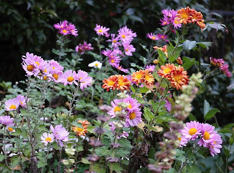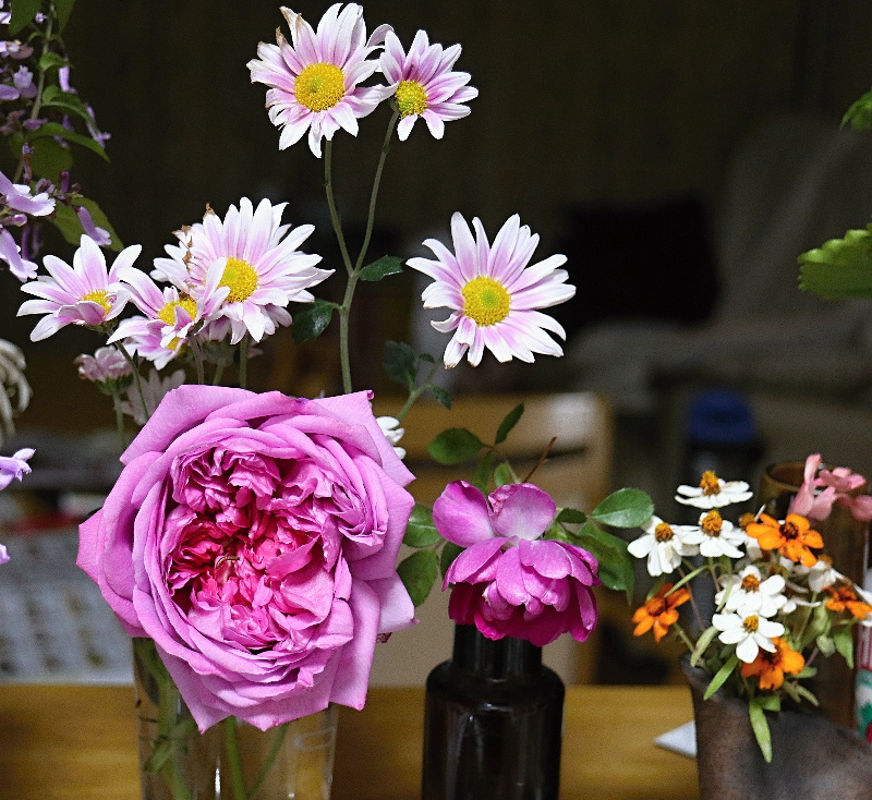 デルバールのローズポンパドールが一輪綺麗に咲きましたジニアリネアリス、春からずーっと綺麗に咲いていましたが、冬の花ビオラに変えるため切り取りました。右の千日紅も同じく、とても長い期間楽しませてくれたのですが、霜が降りると駄目になるので切り取り飾りました。何時までも綺麗、我が家で発生した家菊庭の隅で咲いてたアキチョウジ