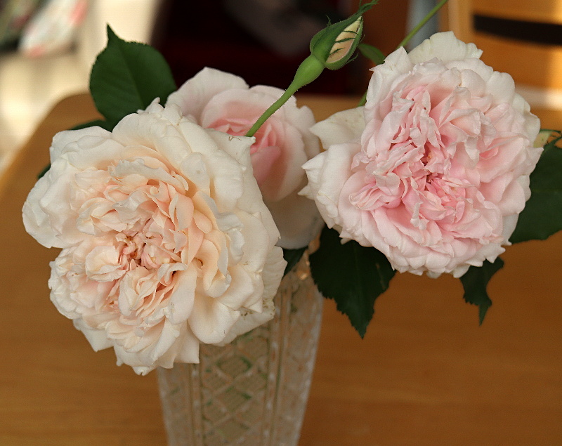 家の中から見たメアリーローズ綺麗なバラですが、花持ちがあまり良くないところが残念なところ。沢山咲いているバラ陰で咲いているのを切り取りました。コーネリア、アリスターステラグレイ、パットオースチン、ウイリアムモーリス下の3輪はイングリッシュローズの、可愛くて大好きなシスターエリザベス。