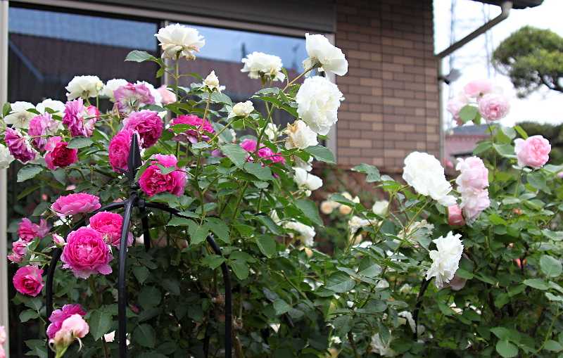 ロサオリエンティスのシェエラザード、シューラネージュピンクはイングリッシュローズのキャサリンモーレーいわての春 花持ちがとても良い寒い時期はピンクに咲きます。樹勢が強く、病気にも強い優秀なバラです。いわての春デルバールのシャンテロゼミサトイングリッシュローズのメイドマリオン(右)シャンテロゼミサト木立ち樹形なで、昨年まで樹の頂部に数輪づつ咲いただけでしたが、バラの家のバラ塾で横に誘引して沢山咲いていたのを見て、マネしてみました。今年は一株で見違えるほど沢山咲きました。シャンテロゼミサトメイドマリオンロサオリエンティスのプシュケ樹勢が強いので高い所で咲いてしまいます