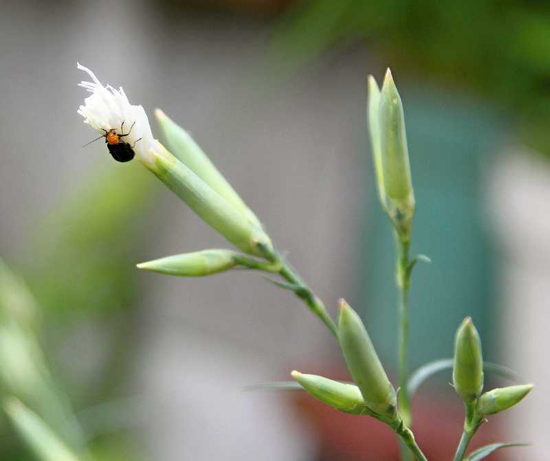 にっくきウリハ虫大好きなナデシコの蕾や花を食い荒らします。キキョウや他の花もやられます。のろまななので、簡単に捕殺できますが、大量に発生しているので、追いつきません。消毒も効き目がなく恨めしいです。