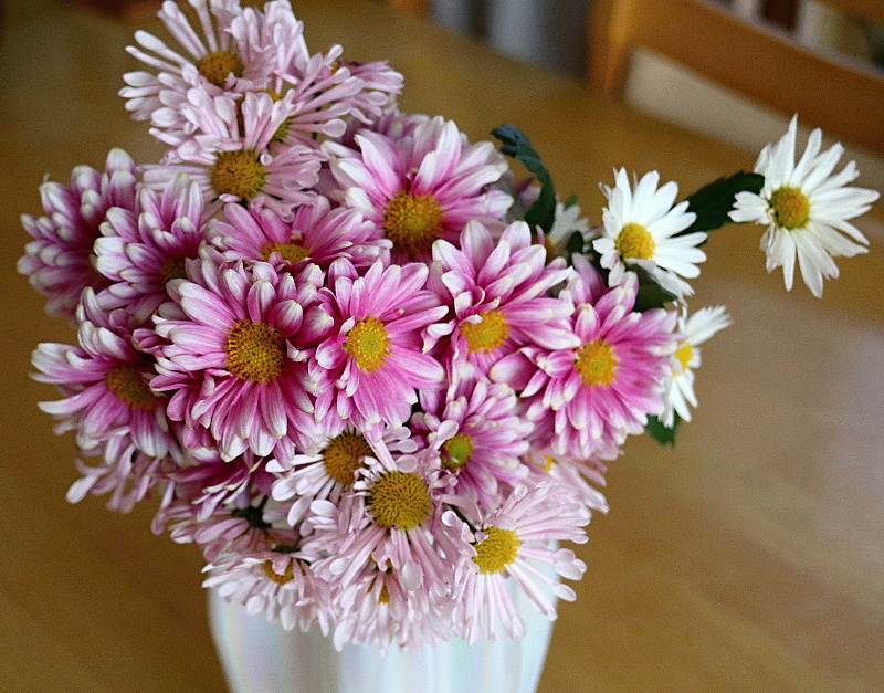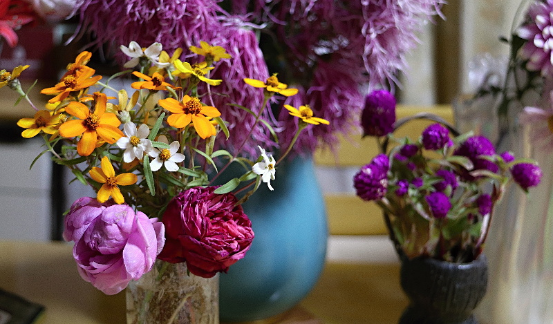 右の千日紅も同じく、とても長い期間楽しませてくれたのですが、霜が降りると駄目になるので切り取り飾りました。