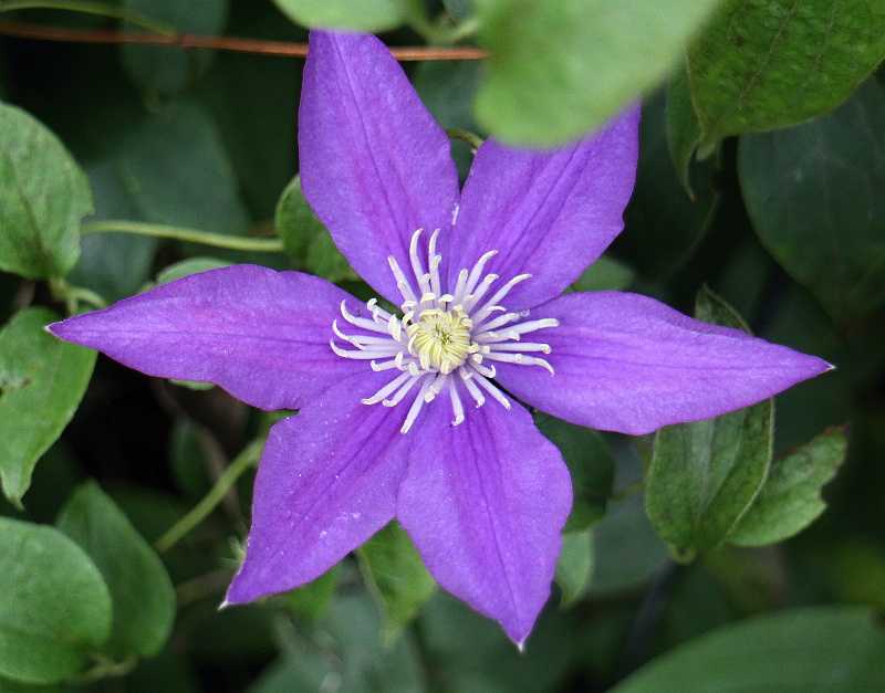 春は、白っぽくボール状に咲きますが、夏花は花弁少なく薄紫に咲きます。