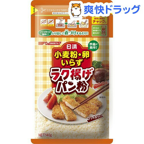 小麦粉も卵もいらないんだって!!! 時短で簡単主婦の味方! もうあの卵どろどろもさよならね! 日清 小麦粉・卵いらず ラク揚げ パン粉 チャック付(140g)